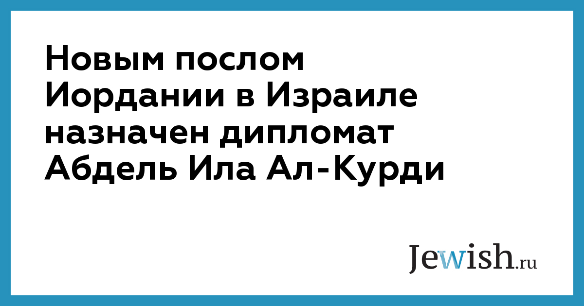 Новым послом Иордании в Израиле назначен дипломат Абдель Ила Ал-Курди