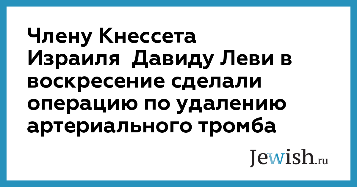 Члену Кнессета Израиля Давиду Леви в воскресение сделали операцию по удалению артериального тромба