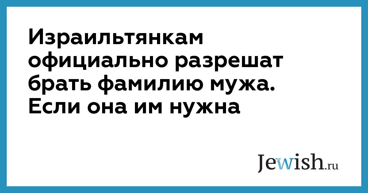 Израильтянкам официально разрешат брать фамилию мужа. Если она им нужна