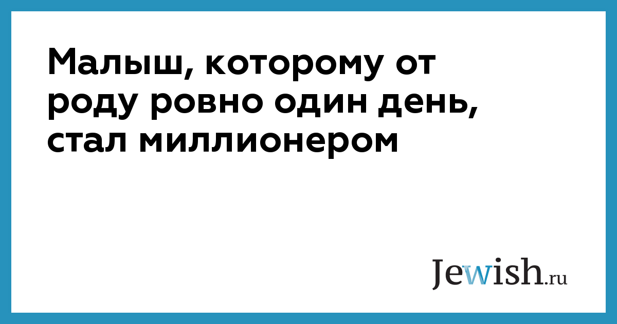 Малыш, которому от роду ровно один день, стал миллионером