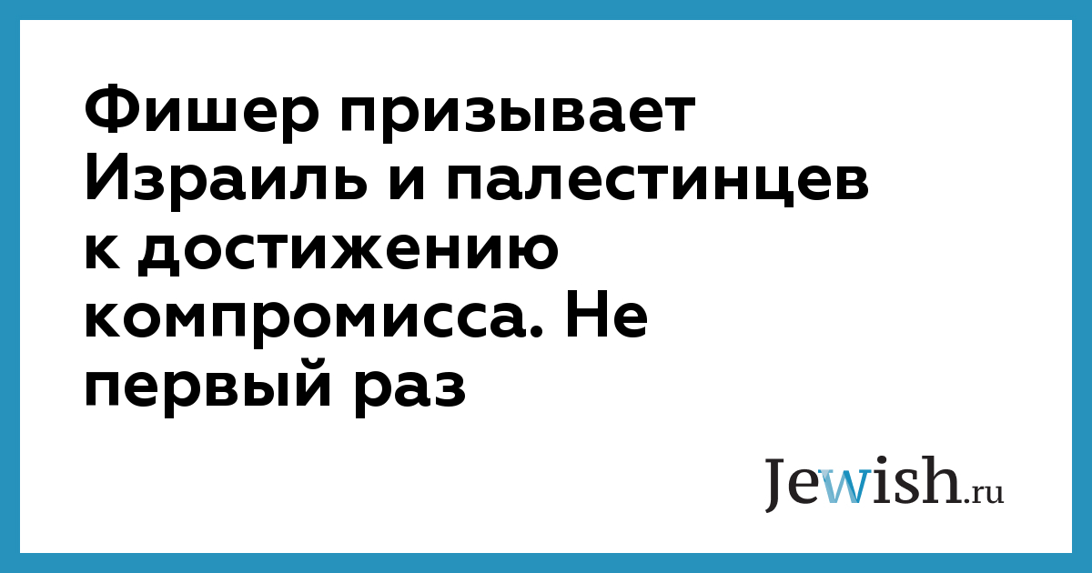Фишер призывает Израиль и палестинцев к достижению компромисса. Не первый раз