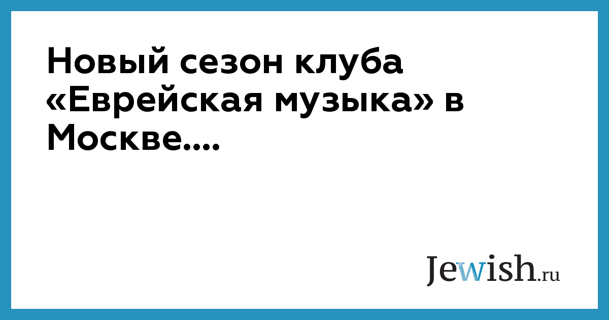 Новый сезон клуба «Еврейская музыка» в Москве....