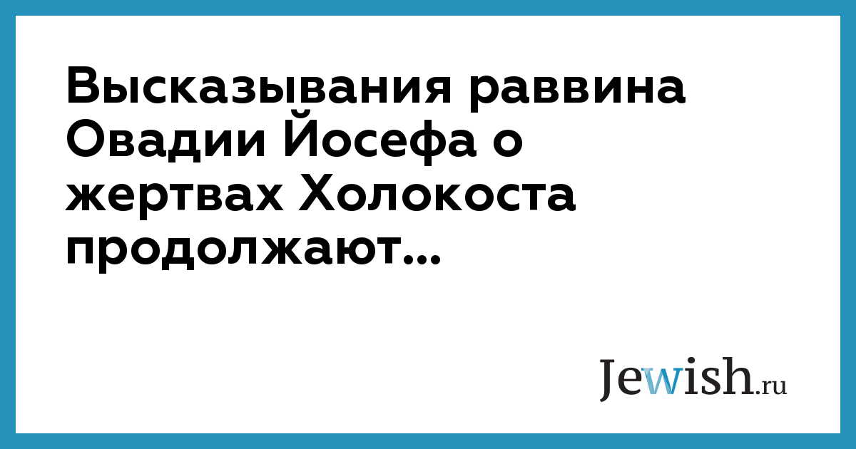 Высказывания раввина Овадии Йосефа о жертвах Холокоста продолжают...