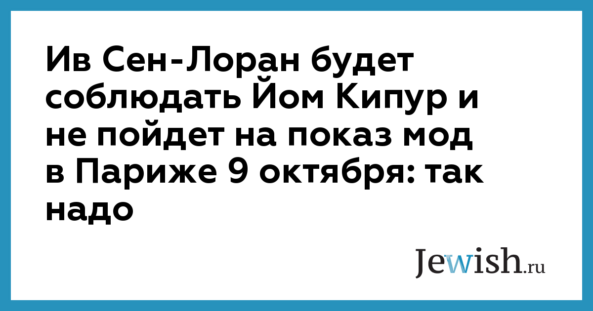 Ив Сен-Лоран будет соблюдать Йом Кипур и не пойдет на показ мод в Париже 9 октября: так надо