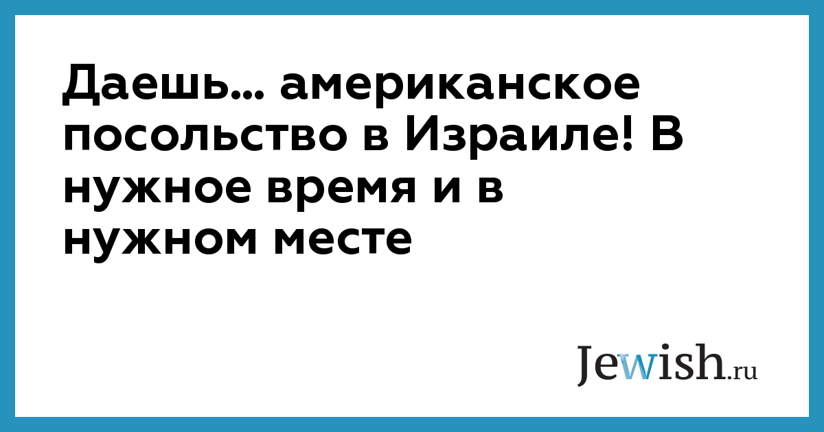 Даешь… американское посольство в Израиле! В нужное время и в нужном месте