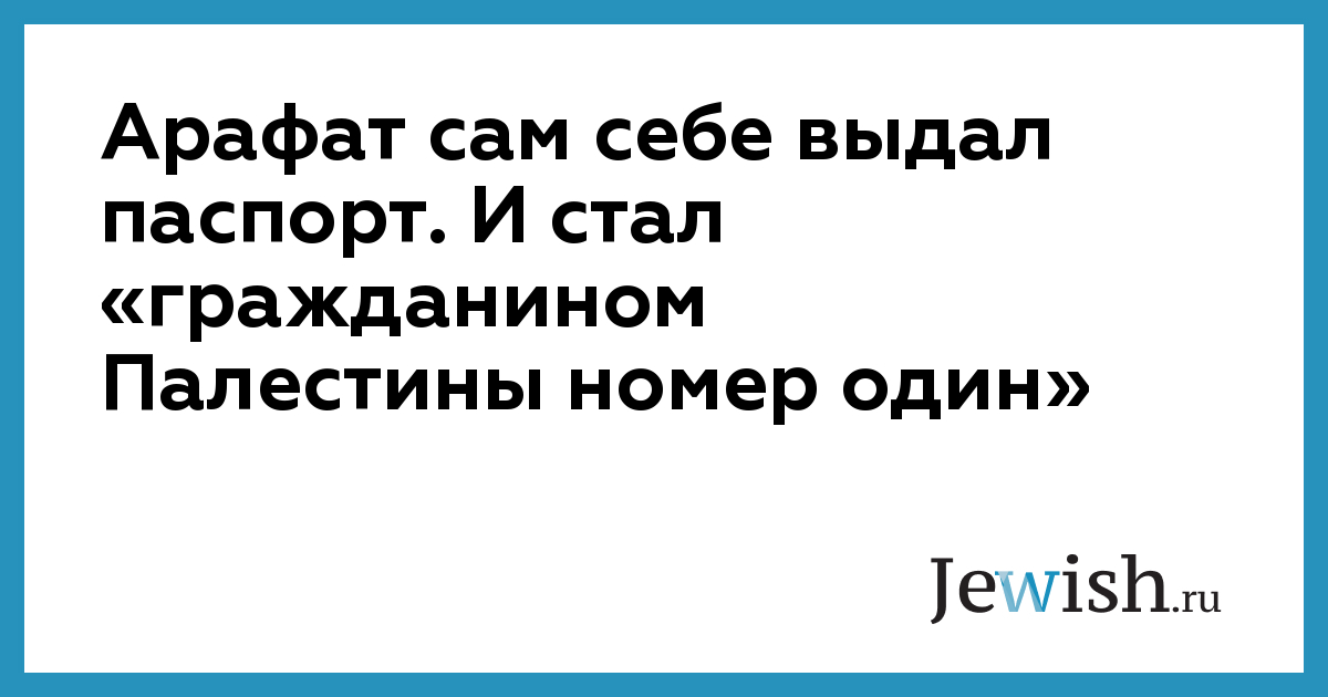 Арафат сам себе выдал паспорт. И стал «гражданином Палестины номер один»