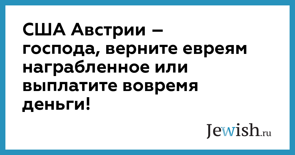 США Австрии – господа, верните евреям награбленное или выплатите вовремя деньги!