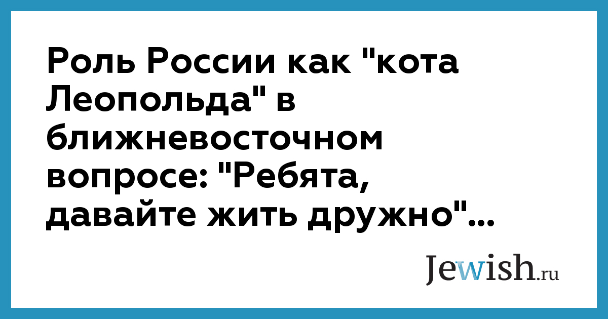 Роль России как "кота Леопольда" в ближневосточном вопросе: "Ребята, давайте жить дружно"...