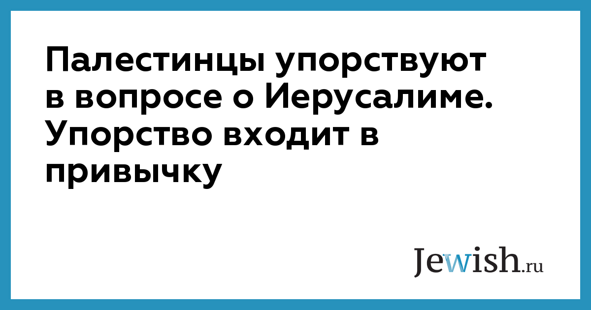 Палестинцы упорствуют в вопросе о Иерусалиме. Упорство входит в привычку