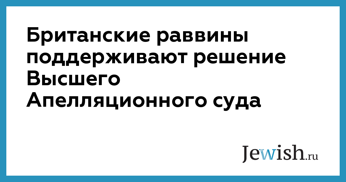 Британские раввины поддерживают решение Высшего Апелляционного суда