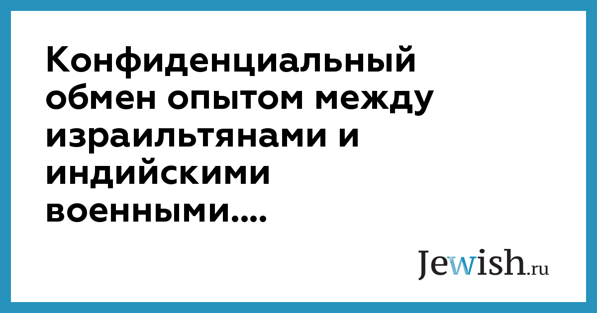 Конфиденциальный обмен опытом между израильтянами и индийскими военными....