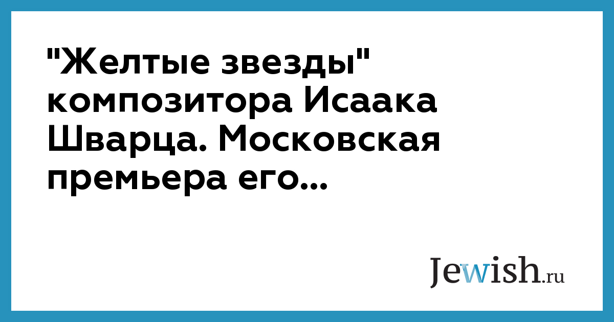 "Желтые звезды" композитора Исаака Шварца. Московская премьера его...