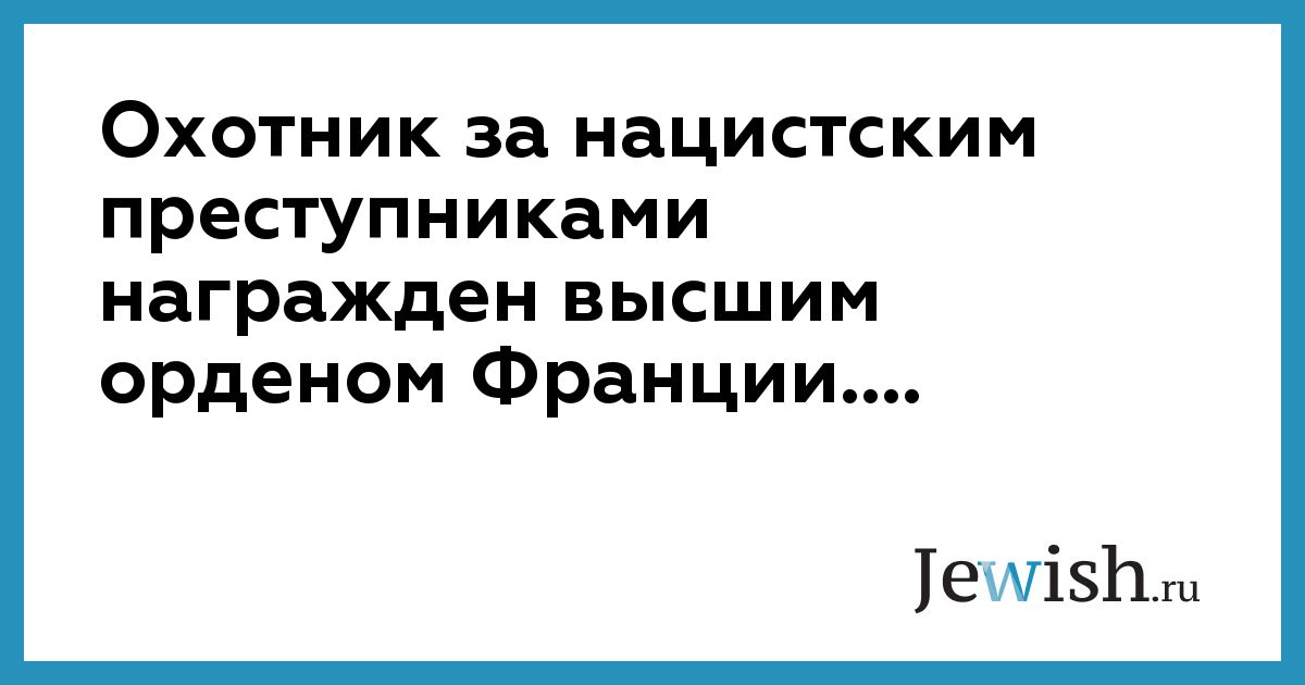 Охотник за нацистским преступниками награжден высшим орденом Франции....