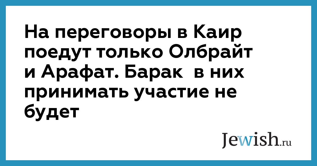 Премьер-министр Израиля Эхуд Барак не будет принимать участия в очередном раунде мирных переговоров, намеченных на четверг в Египте. Как сообщает ВВС со слов израильских дипломатов, он возвращается домой, так как лидер палестинцев Арафат отказался подписать соглашение о прекращении ведущихся в последние дни столкновений. По официальным данным, это соглашение было подготовлено в среду на трехсторонней встрече в Париже, и в соответствии с ним Израиль и палестинцы должны были бы вывести свои силы из зон наиболее жестоких стычек как на палестинской территории, так и в Израиле. Кроме того, обе стороны согласились на то, чтобы представители ЦРУ США провели срочную инспекцию ситуации на спорных территориях и разработали предложения, позволяющие удержать обстановку под контролем. Оба лидера собирались в четверг отправится в Египет, чтобы там в присутствии президента этой страны Хосни Мубарака, поставить свои подписи под документом. Однако, высокопоставленный представитель палестинцев заявил, что никакого соглашения выработано не было, так как не было выполнено главное требование палестинцев — учреждение международного расследования недавних столкновений. В настоящее время Олбрайт и Арафат направляются в Каир, где будут продолжать переговоры без Барака.