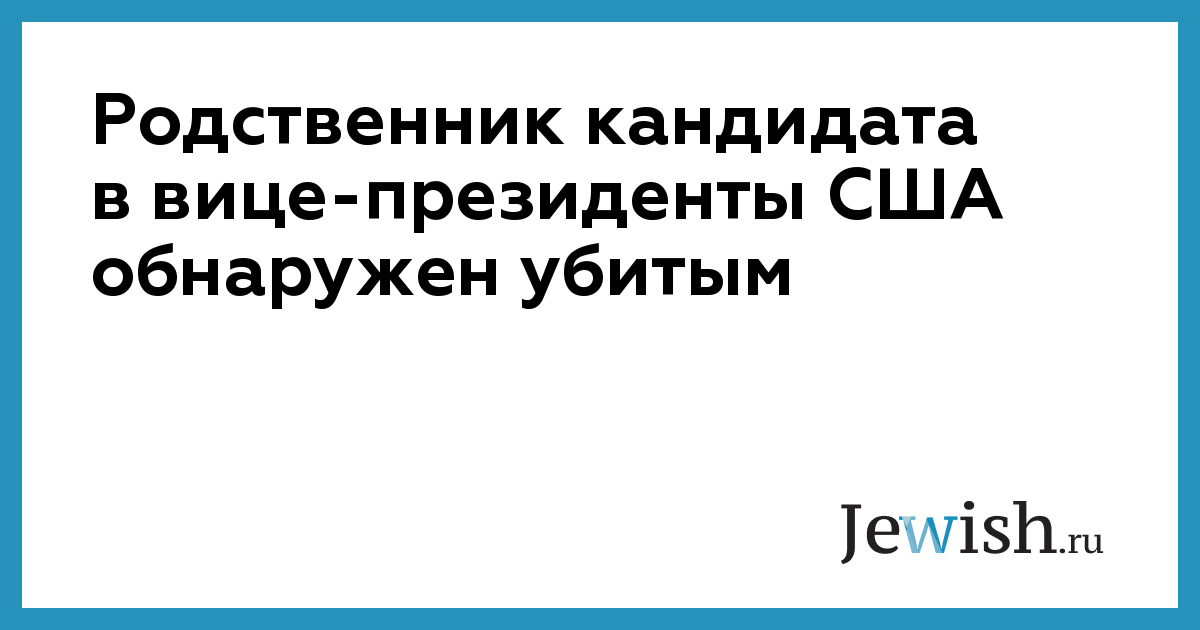 Родственник кандидата в вице-президенты США обнаружен убитым