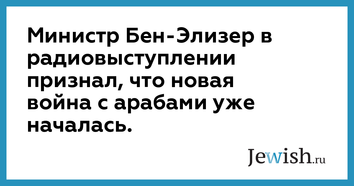 Министр Бен-Элизер в радиовыступлении признал, что новая война с арабами уже началась.
