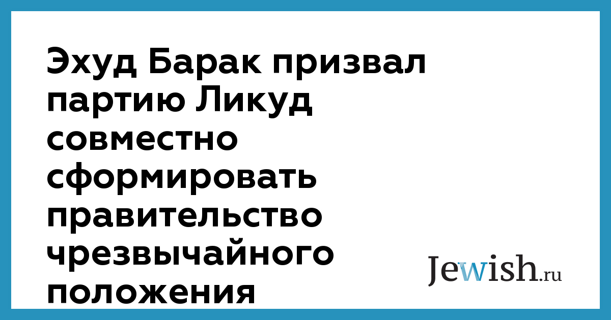 Эхуд Барак призвал партию Ликуд совместно сформировать правительство чрезвычайного положения