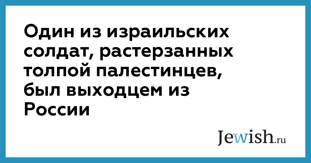Израиль всколыхнуло свидетельство того, какую ужасную смерть уготовили палестинцы трем солдатам, не замешанным ни в военных преступлениях, ни в оскорблениях арабских святынь. Об этом рассказывает НТВ. Резервистов забили до смерти, после чего вывесили тело одного из них из окна полицейского участка на поругание толпе. Погибшие не служили ни в спецназе, ни в Моссад. Они даже не были полицейскими. Всех их призвали в армию всего несколько дней назад. Это были резервисты, ополченцы. Толпа палестинцев в Рамалле растерзала нескольких ополченцев, у которых не было ни оружия, ни даже военного обмундирования. Один из израильтян, погибших мученической смертью в Рамалле, – 33-летний выходец из России Вадим Нуржич. В Израиле Нуржич работал водителем и был призван в армию всего через несколько дней после своей свадьбы. Его жена Ирина Нуржич, тоже российская иммигрантка, стала вдовой на второй неделе медового месяца. Ирина и Вадим жили в районе Орот города Ор-Акива. Еще вчера, провожая мужа на службу, Ирина сказала ему: "Будь осторожен и думай о своей семье". Узнав о том, что случилось в Рамалле, она позвонила Вадиму по мобильному телефону, чтобы убедиться, что с ним все в порядке, что происшедшее не коснулось его. На звонок ответил голос с арабским акцентом и телефон тут же отключился. Судя по всему, Ирина Нуржич услышала голос одного из убийц Вадима. Но тогда Ирина не осознала, какой удар ее постиг. Лишь вечером она получила горькое известие. Семья Вадима – Ирина, его отец Исай и брат Михаэль — сегодня будет хоронить погибшего на кладбище в Ор-Акиве. Второй солдат, погибший в Рамалле, — 38-летний старший сержант Йосеф Авраам. Авраам работал коммерческим агентом в городе Петах-Тикве. Авраам был женат, трое его детей остались сиротами.