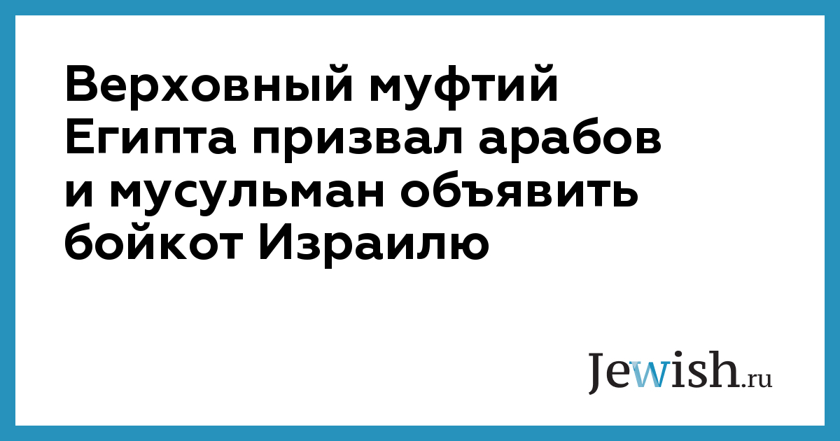 Верховный муфтий Египта призвал арабов и мусульман объявить бойкот Израилю