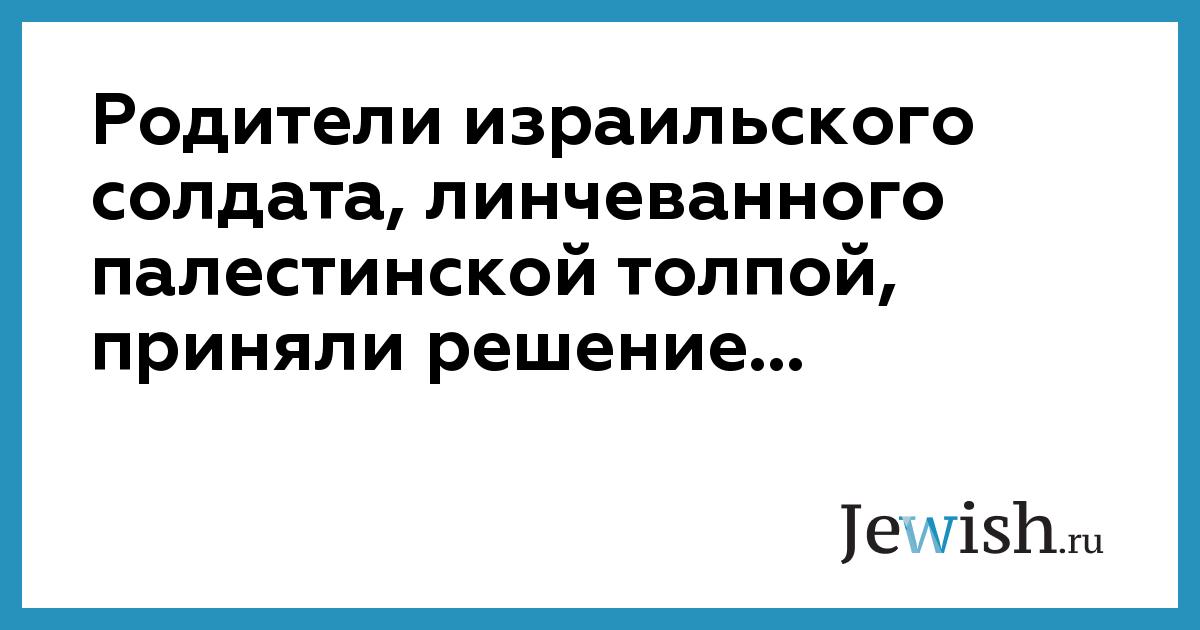 Родители израильского солдата, линчеванного палестинской толпой, приняли решение...