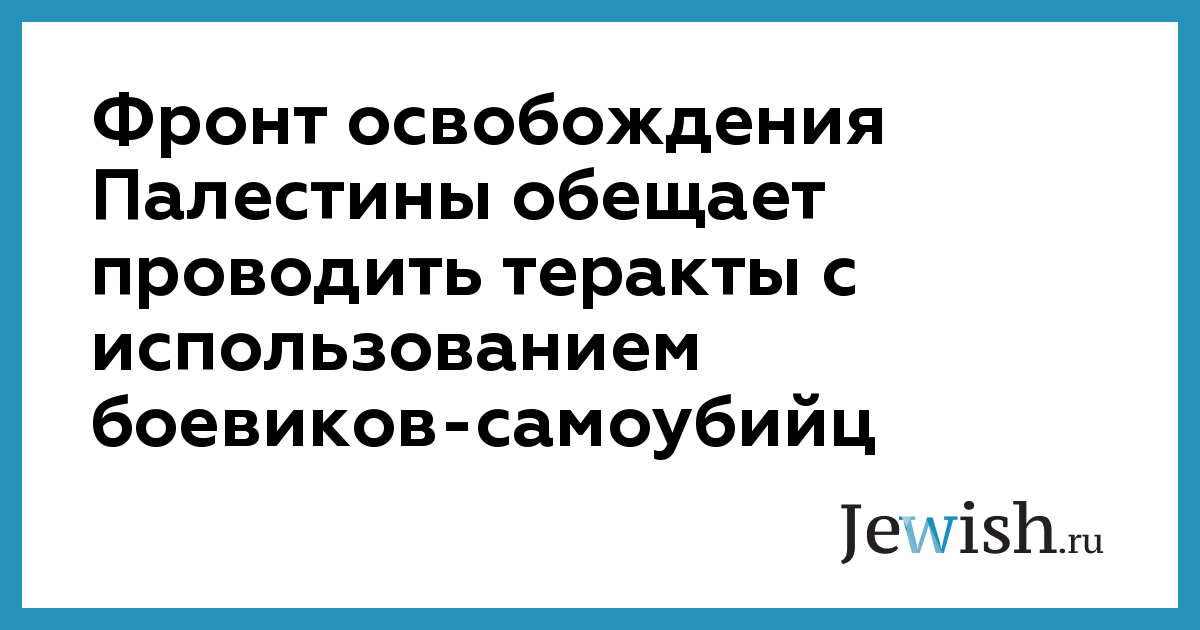 Фронт освобождения Палестины обещает проводить теракты с использованием боевиков-самоубийц
