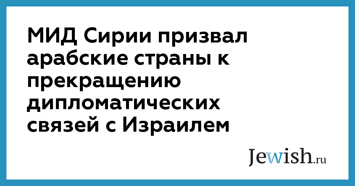 МИД Сирии призвал арабские страны к прекращению дипломатических связей с Израилем