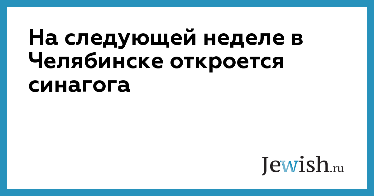 На следующей неделе в Челябинске откроется синагога