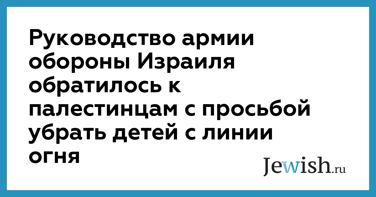 Руководство армии обороны Израиля обратилось к палестинцам с просьбой убрать детей с линии огня