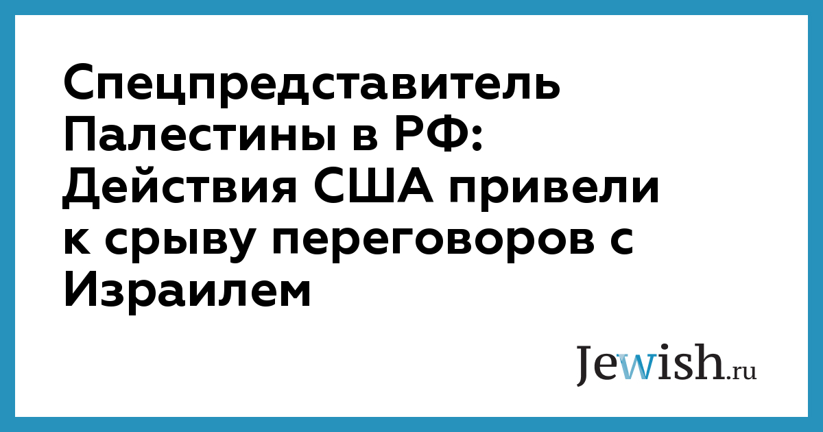 Спецпредставитель Палестины в РФ: Действия США привели к срыву переговоров с Израилем