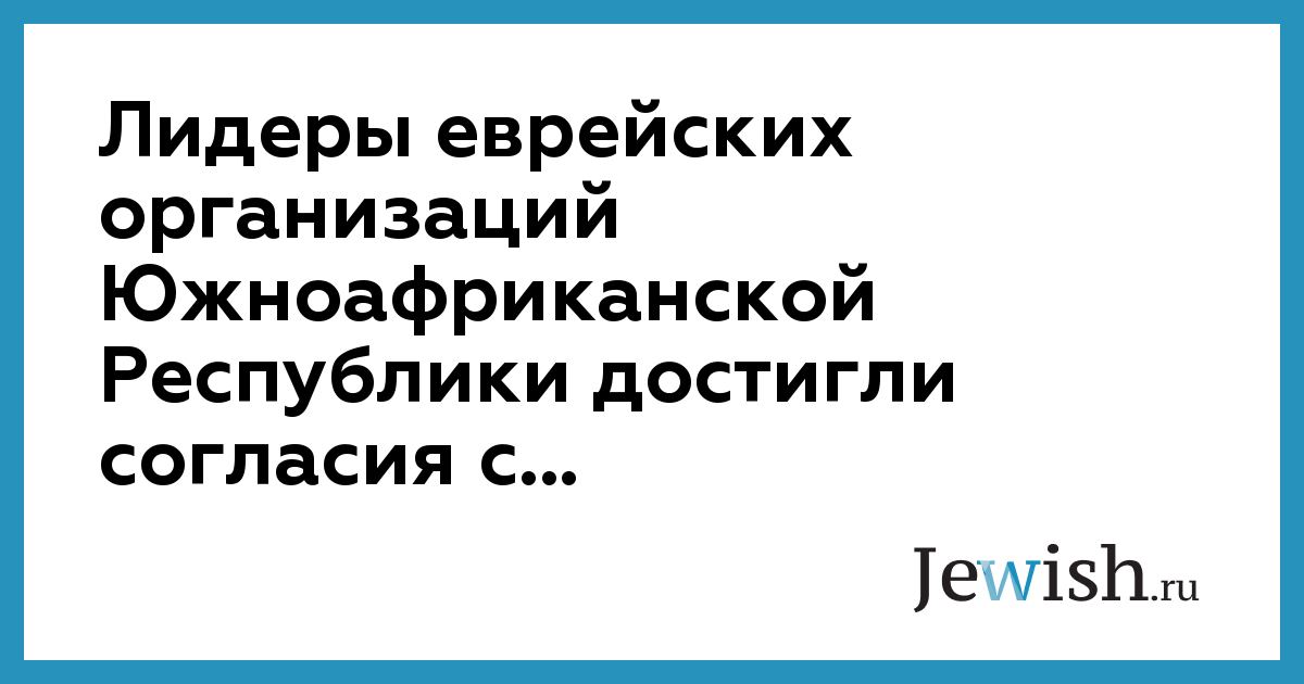 Лидеры еврейских организаций Южноафриканской Республики достигли согласия с...