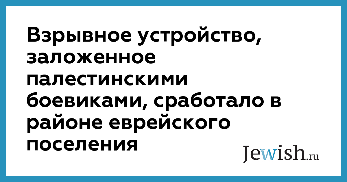 Взрывное устройство, заложенное палестинскими боевиками, сработало в районе еврейского поселения