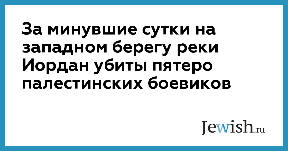 За минувшие сутки на западном берегу реки Иордан убиты пятеро палестинских боевиков
