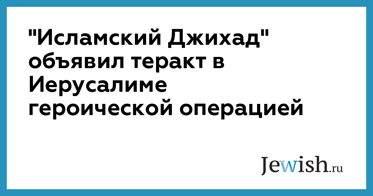 "Исламский Джихад" объявил теракт в Иерусалиме героической операцией
