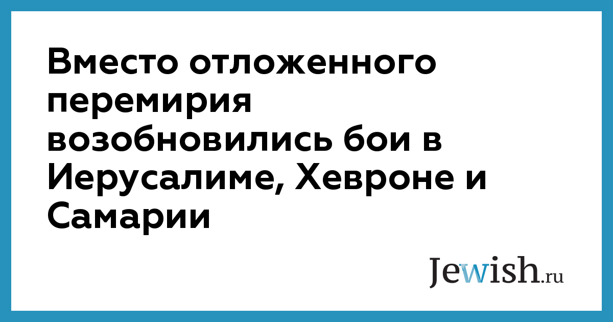 Вместо отложенного перемирия возобновились бои в Иерусалиме, Хевроне и Самарии