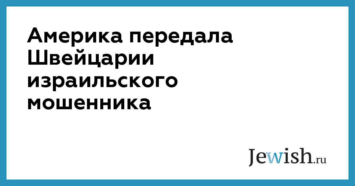 Америка передала Швейцарии израильского мошенника