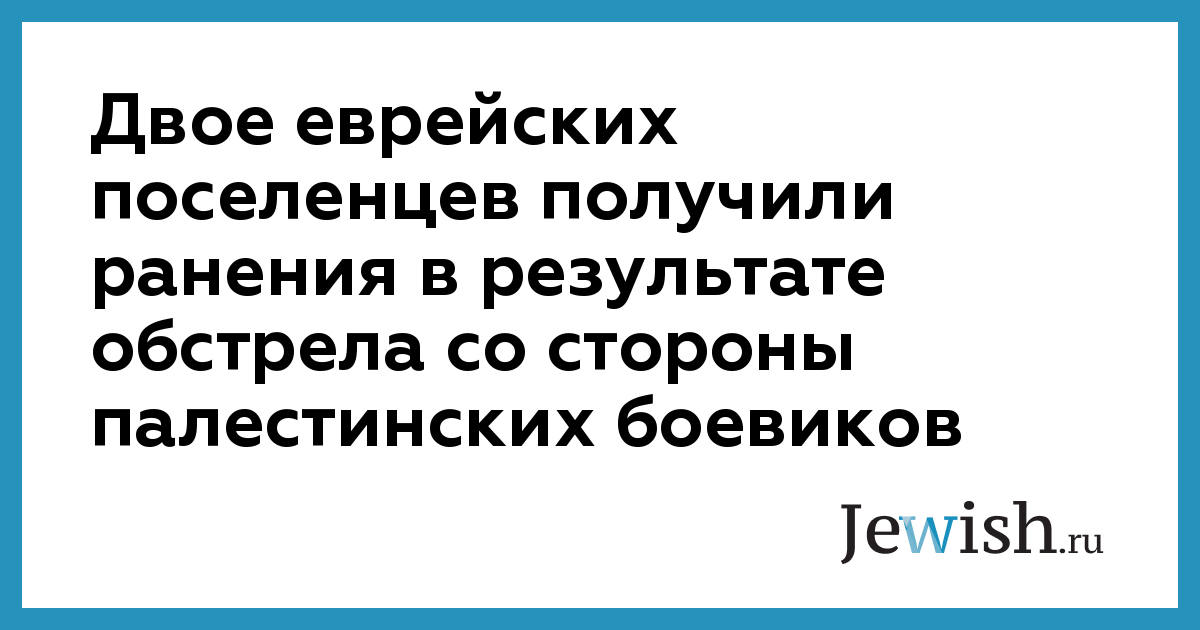 Двое еврейских поселенцев получили ранения в результате обстрела со стороны палестинских боевиков
