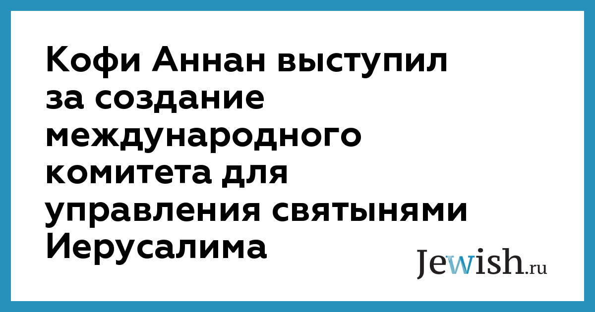 Кофи Аннан выступил за создание международного комитета для управления святынями Иерусалима