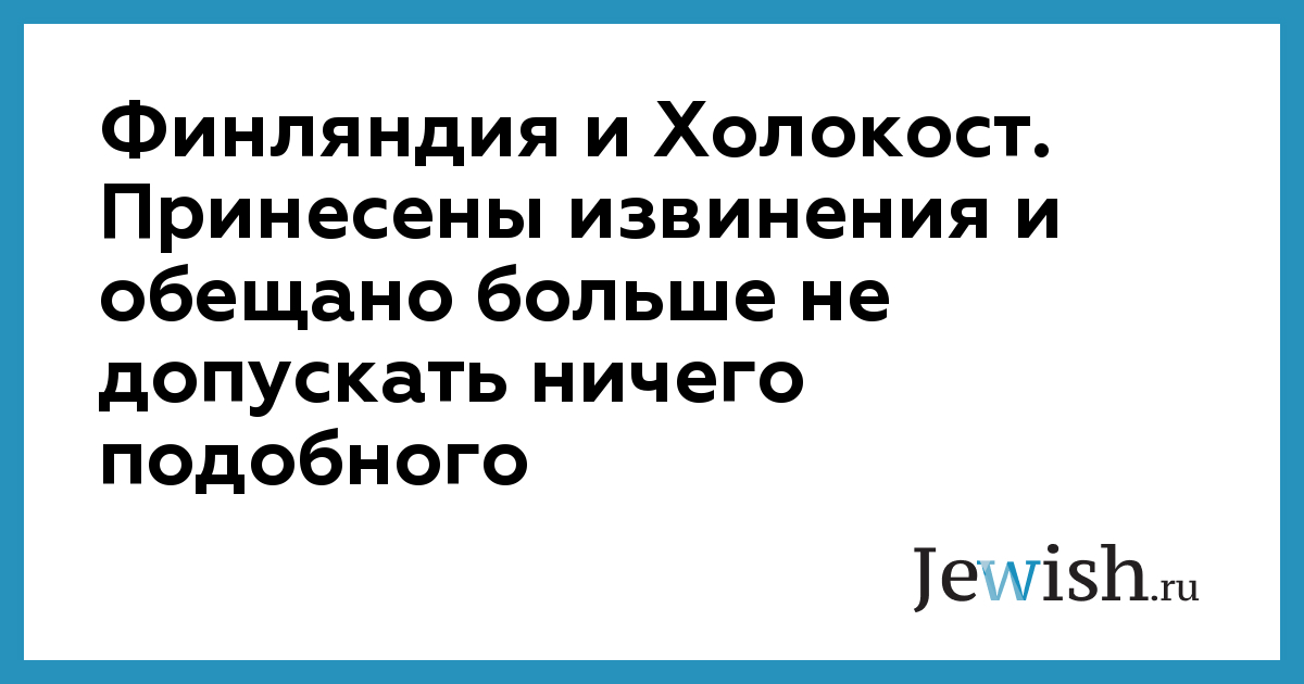 Финская лютеранская церковь принесла официальные извинения еврейской общине Финляндии за свое молчание и — косвенным образом — попустительство уничтожению евреев в годы Холокоста. Об этом было заявлено устами высокого церковного руководителя на официальном собрании всех ответственных лиц в иерархической структуре лютеранской церкви Финляндии. Более того, эта организация, пользующаяся в стране немалым влиянием, пообещала делать в будущем гораздо больше для того, чтобы просвещать общество, способствовать осознанию исторической вины перед евреями и недопущения подобных событий в будущем, как и вообще любых проявлений антисемитизма и ксенофобии. Напомним, что Финляндия была союзницей Германии во Второй мировой войне, и хотя на ее территории не было лагерей смерти, она отвечает за многое из того, что было предметом рассмотрения на Нюрнберском процессе. Признание вины — позитивный шаг в любом случае, даже если он не будет иметь никаких практических последствий — ведь в Финляндии почти не осталось еврейского населения. Впрочем, наличие или отсутствие конкретных действий по исправлению исторической вины станет очевидно в самом скором будущем.