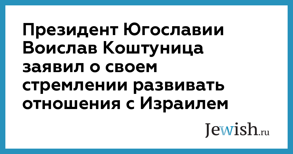 Президент Югославии Воислав Коштуница заявил о своем стремлении развивать отношения с Израилем