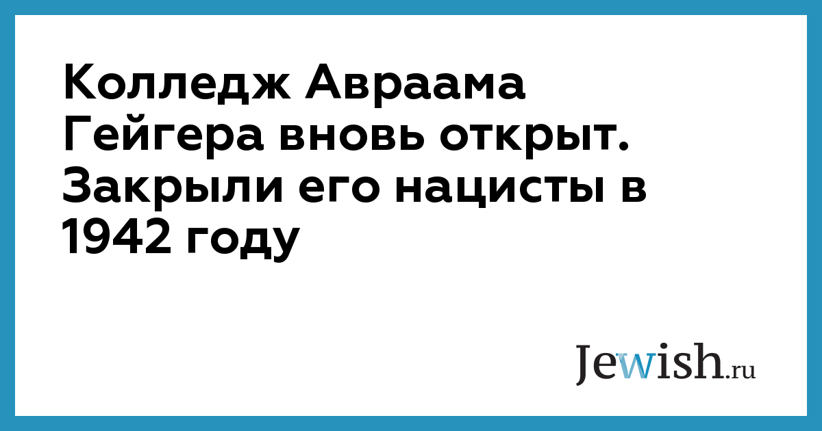 Колледж Авраама Гейгера вновь открыт. Закрыли его нацисты в 1942 году