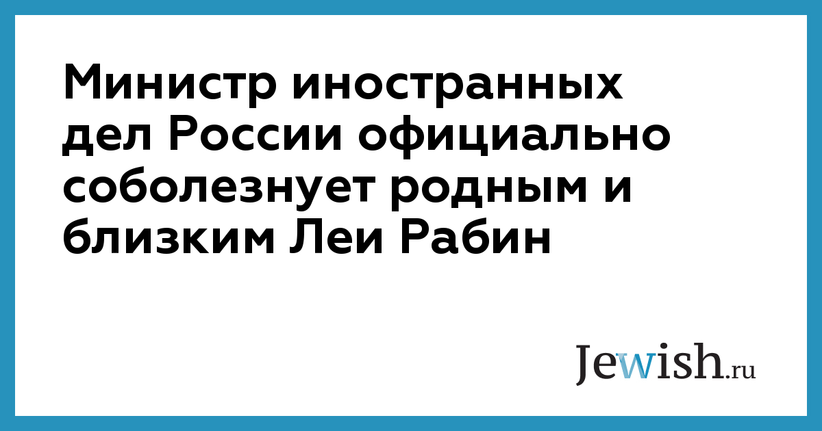 Министр иностранных дел России официально соболезнует родным и близким Леи Рабин