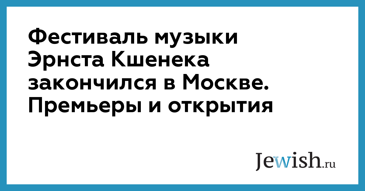 Трехдневный фестиваль к столетию известного во всем мире (хотя и подзабытого, но теперь возвращенного в репертуар) австрийского композитора — еврейского авангардиста Эрнста Кшенека — завершился в московском театре "Геликон-опера". В последний день была показана российская премьера его камерной оперы "Цена доверия" с четырьмя певцами-солистами и роялем: пианист Юрий Полубелов не только участвовал во всех программах этого уникальног фестиваля, но явился его хуожественным руководителем. Прозвучали также камерные произведения Кшенека, большинство из них — впервые. Кшенек был учеником Арнольда Шенберга, пользовался в своей музыке не только его системой (серийной додекафонией, которая была запрещена нацистами как "злокозненное изобретение еврейского формализма"), но и ритмами, мотивами и идиомами джаза, современной ему легкой музыки и ашкеназийского еврейского фольклора. Самая известная опера Кшенека "Джонни наигрывает" прошла с невероятным успехом практически по всем сценам Европы в 1927-1933 годах, но из-за прихода к власти режима Гитлера была снята, изъята и надолго забыта. В 1990-ые годы (после смерти автора, который дожил до 1991 года в США) начался гастоящий "бум" Кшенека, его музыку сейчас называют настоящей классикой ХХ века, нестареющей и вечно современной. Московский фестиваль подтвердил это новым внушительным успехом у чрезвычайно требовательной и искушенной публики, которая собалась, чтобы послушатьновые для нее вещи — и ни разу не была разочарована.