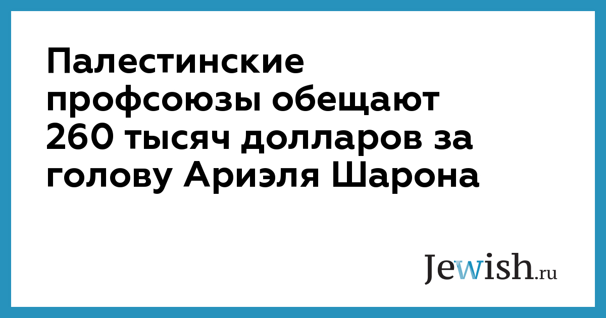 Палестинские профсоюзы обещают 260 тысяч долларов за голову Ариэля Шарона