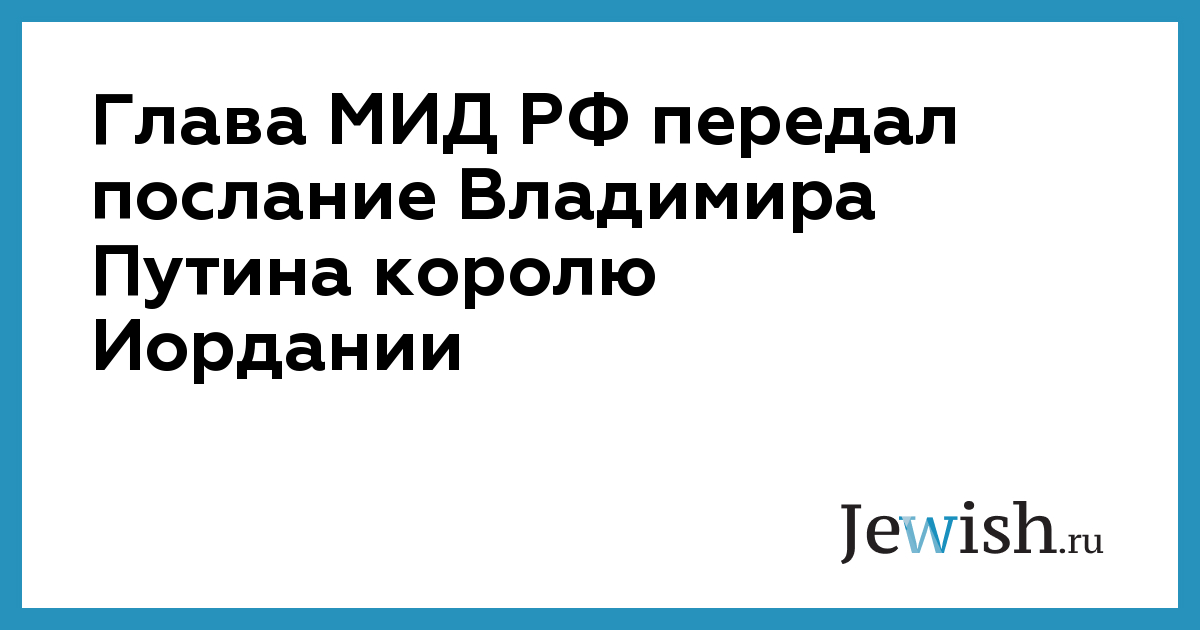 Глава МИД РФ передал послание Владимира Путина королю Иордании