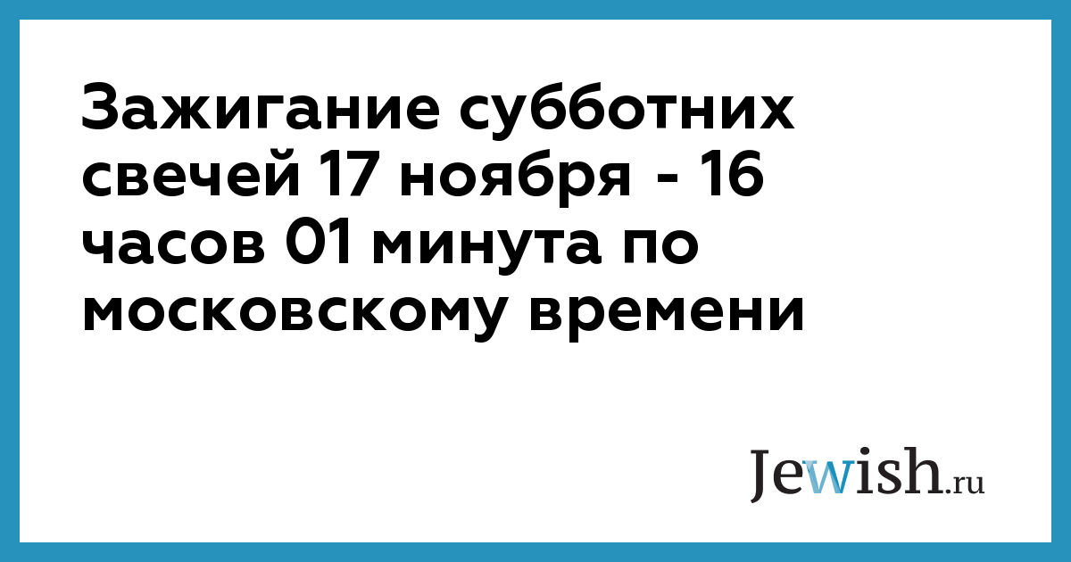 Зажигание субботних свечей 17 ноября — 16 часов 01 минута по московскому времени
