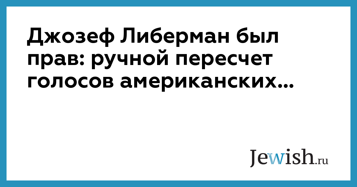 Джозеф Либерман был прав: ручной пересчет голосов американских...