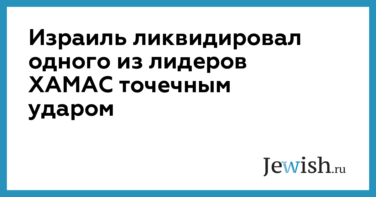 Израиль ликвидировал одного из лидеров ХАМАС точечным ударом