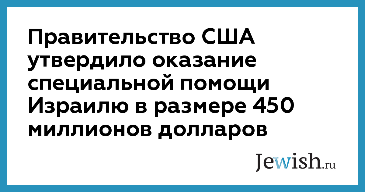 Правительство США утвердило оказание специальной помощи Израилю в размере 450 миллионов долларов