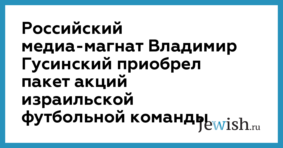 Российский медиа-магнат Владимир Гусинский приобрел пакет акций израильской футбольной команды