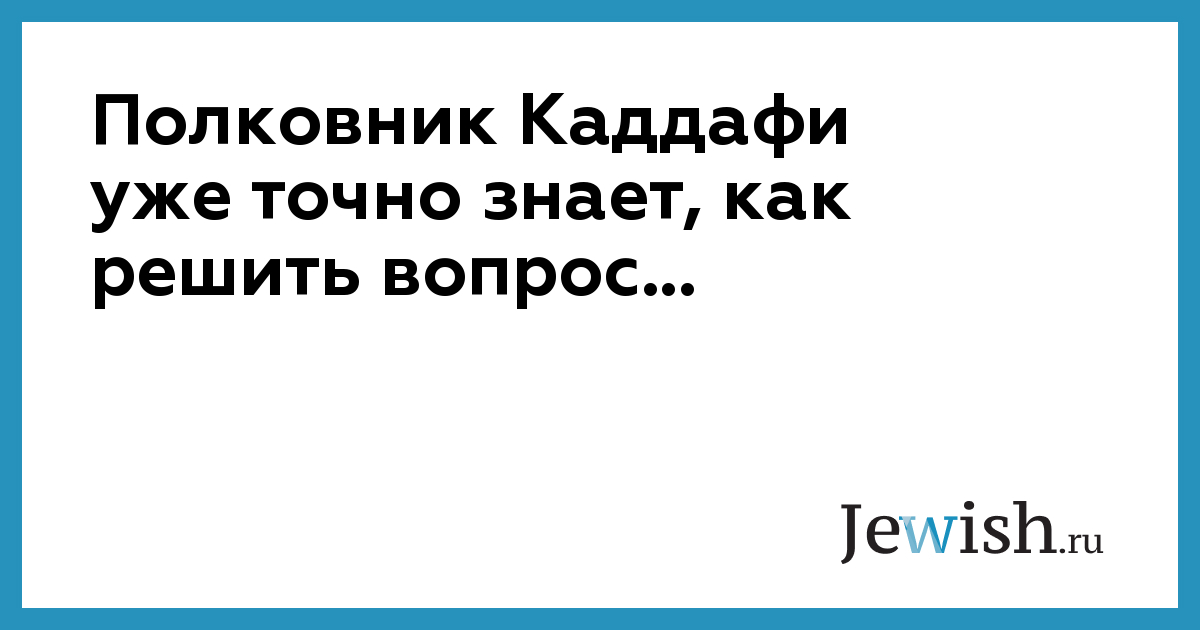 Глава Ливийской арабской джамахирии полковник Мy'аммар Каддафи в понедельник призвал республиканца Джорджа Буша и демократа Альберта Гора поделить президентское кресло, и тем самым предотвратить в США гражданскую войну. Глава Ливии, где осуществляется так называемое «прямое правление народной демократии», считает американскую демократию «фальшивой» и не видит никакой разницы между Гором и Бушем — оба они, по его мнению, проклятые империалисты, "еврейские наймиты" и "сионистские прихвостни", только Гор — может быть — в чуточку большей степени, чем техасский губернатор Буш, не имеющий напарника-еврея, как Гор. Известно, что Каддафи один из немногих оставшихся в мире живых образчиков лидера — зоологического антисемита, который, будучи и сам семитом по крови (арабской, разумеется!), вовсе не трудится никак скрывать своих "людоедских" антиеврейских настроений и антипатий. Агентство Reuters, сообщившее нам эту новость, не уточняет, как именно предлагает ливийский лидер, известный своими экстравагантными замашками, поделить президентское кресло (распилить, разорвать, разобрать на части и выдать их поровну двум кандидатам), как он вообще представляет себе устройство этого таинственного предмета американской мебели, и наконец — зачем тогда вообще было затевать столь сложное и хлопотное дело как избрание одного президента из нескольких желающих занять это место?..